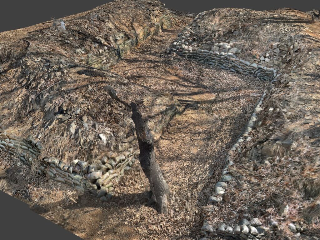 尾根の稜線に沿って高さ1~2mの石塁と幅0.5~5m、深さ0.5~1.5mの空堀がめぐる。傾斜のきついところでは日本の城郭でいう竪堀と登石垣のように等高線に対して直行する石塁と空堀が確認できる。